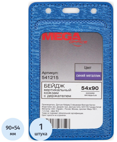 вертикальный, 54x90 мм, синий, кожзам, без держателя