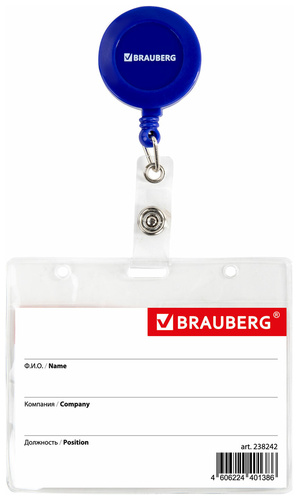 Бейдж горизонтальный жесткокаркасный BRAUBERG EXTRA
