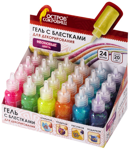 для декора, поделок, DIY, творчества, оформления, 20 мл, НЕОН, цвета ассорти, в дисплее, 24 шт/уп