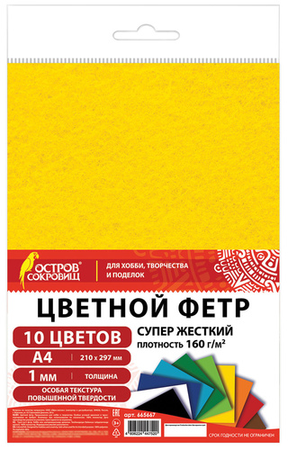 Цветной фетр, мягкий ОСТРОВ СОКРОВИЩ