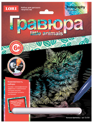 с эффектом голографии LITTLE ANIMALS "Котёнок британец", 18х24 см, основа, штихель