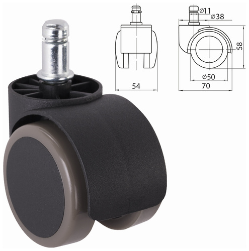 прорезиненные, хром, d 60 мм, 5 шт/уп, шток d 11 мм, черные