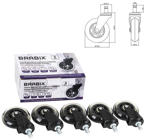 мягкие, резиновые, d 76 мм, 5 шт/уп, шток d 11 мм, в коробе