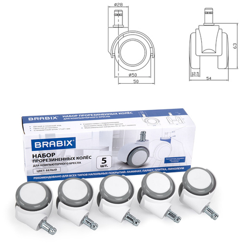 прорезиненные, 5 шт/уп, шток d 11 мм, белые, в коробе
