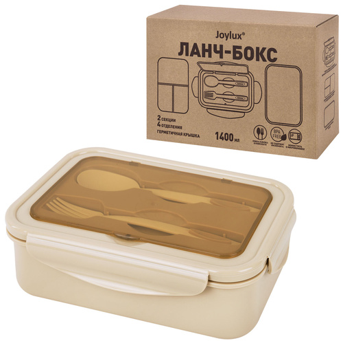 2 секции 3+1 отделение 1,4 л, ложка, вилка 7х21х14 см, бежевый