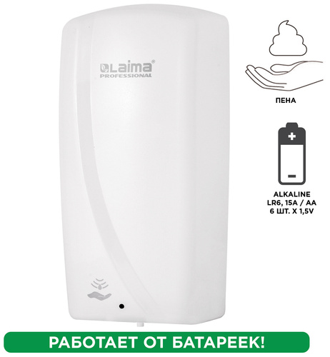 Дозатор для жидкого мыла LAIMA CLASSIC, НАЛИВНОЙ, СЕНСОРНЫЙ, 1 л, с блоком питания, белый, 607318