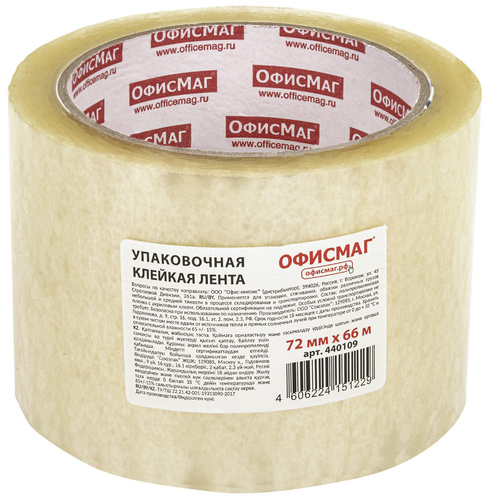50 мкм, 48 мм х 66 м, прозрачная, 72шт/уп