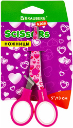 Ножницы BRAUBERG KIDS с цветной печатью "Сердечки"