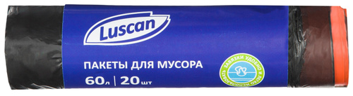 60 л, 58х68 см, 12 мкм, черные, 20 шт/рул, с завязками