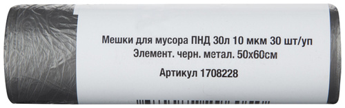 30 л, 50х60 см, 10 мкм, черные, 30 шт/рул
