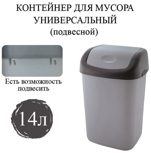 с крышкой (качающейся) 14 литров, ПОДВЕСНОЕ, 42х27х21 см, серый/графит