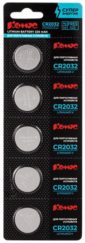 CR2032, 3В, 5шт/уп