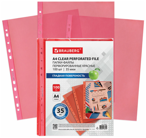 А4, красные, глянцевые, 35 мкм, 100 шт/уп