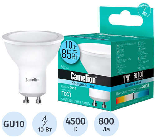 10Вт, 170-265В, 4000К, цоколь GU10, софит, нейтральный белый свет