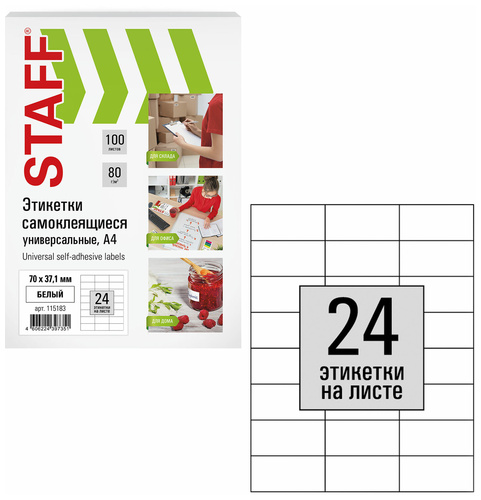 70х37,1 мм, 24 шт на листе, белые, 100 листов