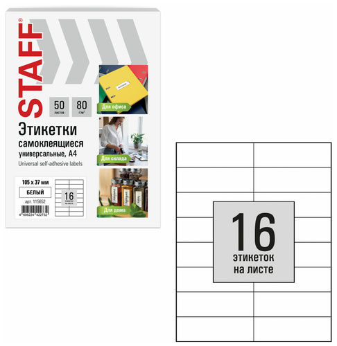 105х42,3 мм, 14 шт на листе, белые, 50 листов