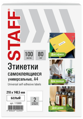 210х297 мм, 1 шт на листе, белые, 50 листов