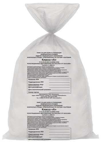 Пакеты для медицинских отходов ПТП КИЛЬ класс А
