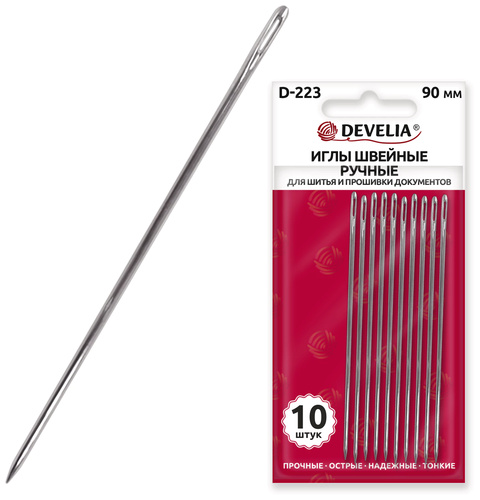 Иглы DEVELIA изготовлены из высококачественной нержавеющей стали, что обеспечивает им долговечность и устойчивость к коррозии. Они прочные и надежные. Идеально подходят для шитья, скрапбукинга, прошивки документов и других видов рукоделия. Благодаря острому кончику и прочному материалу они легко прошивают большинство типов тканей, бумагу и другие материалы.
