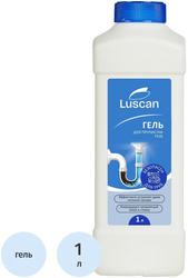 Средство для прочистки труб Luscan гель 1 л<br><br><b>Назначение:</b> эффективный гель предназначен для очищения канализационных труб, устранения и профилактики засоров в раковинах, сифонах, унитазах от органических загрязнений, пищевых остатков, жира, волос, шерсти домашних животных, бумаги и других. Специально разработанная формула стремительно проникает в трубу, очищает её и разрушает засор. Благодаря гелеобразной структуре средство активно даже при наличии воды в раковине. Эффективно для сложных засоров. Уничтожает запахи и бактерии. Безопасно для всех видов труб. Подходит для профилактики образования засоров в канализационных трубах.<br><b>Способ применения:</b> флакон снабжён крышкой с функцией «защита от детей». Для открывания нажать на крышку сверху и повернуть против часовой стрелки. Аккуратно вылить гель в отверстие канализационной трубы или при сильном засоре непосредственно в воду. Оставить на 5 минут. При сильном засоре оставить на более длительное время. Смыть сильной струёй горячей воды. Один флакон рассчитан на 2–3 применения.<br><b>Меры предосторожности:</b> едкое вещество! Беречь от детей! Не применять для алюминия. Не смешивать с моющими средствами, содержащими кислоту. Принять меры для исключения попадания средства в глаза и на слизистые оболочки. Не допускать контакта с кожей. При попадании в глаза или на кожу немедленно промыть большим количеством воды и обратиться к врачу, показав флакон и этикетку.<br><b>Состав:</b> очищенная вода (>30%), гидроксид натрия (5–15%), гипохлорид натрия (5–15%), аПАВ<5%, нПАВ<5%.<br><b>Условия хранения:</b> хранить при комнатной температуре, избегать попадания прямых солнечных лучей. В случае замерзания после размораживания сохраняет свои свойства. После размораживания встряхнуть.<br><b>Срок годности:</b> 2 года с даты изготовления.