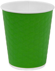 Двухслойный бумажный стакан объемом 250 мл в эко-зеленом цвете с конгревом "соты". Изготовлен из двух слоев пищевого картона высокой плотности 230+15/250 г/м2 с биоразлагаемым полимерным покрытием. Воздушная прослойка между слоями обеспечивает продвинутую термоизоляцию: напитки до +95 °C остаются горячими, а внешняя стенка сохраняет комфортную температуру для рук.