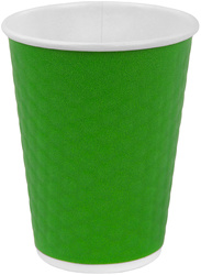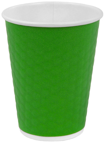 Двухслойный бумажный стакан объемом 300 мл в эко-зеленом цвете с конгревом "соты". Изготовлен из двух слоев пищевого картона высокой плотности 250+15/250 г/м2 с биоразлагаемым полимерным покрытием. Воздушная прослойка между слоями обеспечивает продвинутую термоизоляцию: напитки до +95 °C остаются горячими, а внешняя стенка сохраняет комфортную температуру для рук.