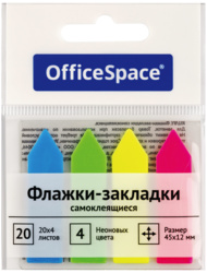 -самоклеящиеся пластиковые флажки-закладки в виде "стрелок" - 4 ярких неоновых цвета по 20 закладок в блоке - Бщее количество закладок: 80 шт - Упакованы в пакет с европодвесом