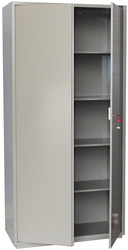 Комплектуется 8 переставными полками. Шаг перфорации - 160 мм. Два отделения. Толщина лицевой панели и корпуса - 1,2 мм. Дверь имеет двойные загибы со всех сторон, изнутри усилена ребром жесткости. Комплектуется ключевыми 6-ти сувальдными замками сейфового типа «BORDER» (Россия). В комплекте по 2 ключа. Петли шкафа – внутренние. Шкаф представляет собой цельносварную металлическую конструкцию прямоугольной формы, соединение элементов которой выполнено методом сварки сплошным швом по контуру прилегания элементов. Шкафы соответствуют требованиям ТР ТС 025/2012 «О безопасности мебельной продукции».