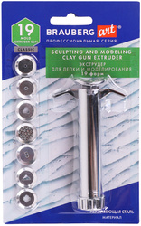 Инструменты для лепки и моделирования BRAUBERG ART "CLASSIC" помогут создать шедевр при занятиях лепкой как новичку, так и профессионалу. Предназначены для работы с глиной, пластилином (скульптурным и обычным), или же мастикой. Экструдер металлический для глины, 19 форм в комплекте. Экструдер достаточно прост в применении и необходим для создания мелких точных деталей для создания шедевра. С таким инструментом справятся и дети, и взрослые. Экструдер для декорирования изделий не портится и не ржавеет благодаря высокому качеству нержавеющей стали. В набор для декора входят 19 дисков разного дизайна, которые смогут с легкостью использоваться художниками для создания геометрического декора и сложных конструкций. Экструдер является востребованным в работе с глиной, мастикой и в других сферах деятельности во всем мире, признан специалистами как самый долговечный и высокотехнологичный инструмент, который позволяет выполнить самые сложные задачи по моделированию.