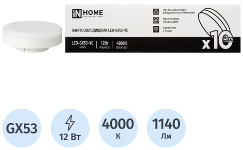 GX53-VC 10PACK 12Вт 230В 4000К, 10шт./уп.