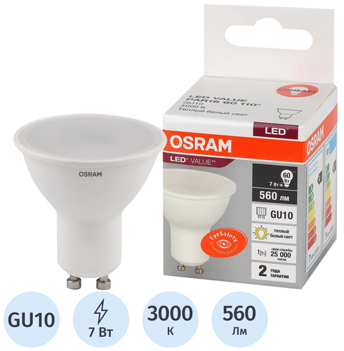 7 Вт GU10 MR 3000 К 560 Лм матовая