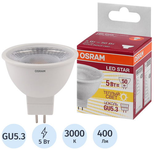 5 Вт GU5.3 MR 3000 К 400 Лм