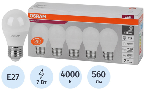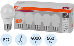 7 Вт E27 P 4000 К 560 Лм матовая, 5шт/уп