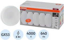 8 Вт GX53 GX 4000 К 640 Лм матовая, 5шт/уп
