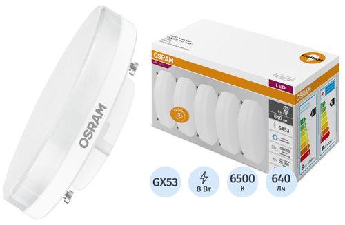 8 Вт GX53 GX 6500 К 640 Лм матовая, 5шт/уп