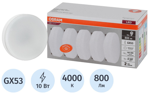 10 Вт GX53 GX 4000 К 800 Лм матовая, 5шт/уп