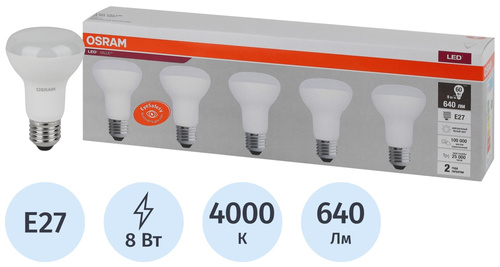 8 Вт E27 R 4000 К 640 Лм матовая,5шт/уп