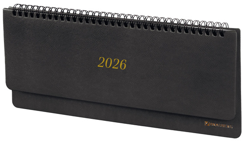 Внутренний блок содержит 60 листов офсетной бумаги кремового цвета плотностью 70 г/м2. Обложка из экокожи черного цвета и твердый переплет обеспечивают долгий срок службы. Для заметок в планинге имеется 11 страниц в конце внутреннего блока. Подходит для горячего тиснения. Скрепление осуществляется с помощью евроспирали. Размер изделия – 305х140 мм.