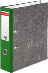 Папка формата А4 с вертикальной ориентацией изготовлена из высококачественного износоустойчивого картона с покрытием под "мрамор". Ширина корешка в 75 мм позволяет разместить до 550 листов. Нижние края папки защищены металлическими уголками, что увеличивает срок службы в 2 раза. Прорези для колец на внешней крышке позволяют оставаться папке закрытой даже при большом количестве бумаг, а надежный арочный механизм легко справляется с ежедневными нагрузками. Зеленый корешок снабжен этикеткой для маркировки содержимого, что позволяет структурировать информацию.