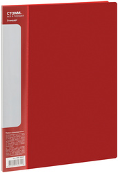 Папка с 20 вкладышами «СТАММ» серии «Стандарт» предназначена для хранения бумаг формата А4. Цвет папки – красный. Папка изготовлена из качественного полипропилена толщиной 600 мкм с текстурой «песок». Тип скрепления – термосварка. Размер изделия составляет 310235 мм. Ширина корешка – 14 мм. Бумагам, вложенным в папку, не требуется перфорация дыроколом. На корешке папки имеется карман. Папка упакована в индивидуальный пакет.<br/>• Размер: 310235 мм;<br/>• Толщина материала: 600 мкм;<br/>• Формат: А4;<br/>• Количество вкладышей: 20;<br/>• Цвет: красный;<br/>• Тип скрепления: термосварка;<br/>• Ширина корешка: 14 мм.