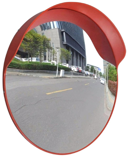 Дорожное сферическое зеркало диаметром 600 мм изготовлено из ударопрочного пластика. Для придания устойчивости с обратной стороны имеется вертикальная стенка с дополнительными ребрами жесткости.<BR><BR>Зеркало оборудовано козырьком для защиты от солнца, снега или дождя. Конструкция крепится к металлической трубе. Зеркальная поверхность не изменяет своих свойств в условиях повышенной влажности, не боится жары и сильных морозов. Чаще всего большие выпуклые зеркала можно увидеть на автомобильных дорогах, поворотах, перекрестках и других опасных местах, где требуется дополнительный обзор проезжей части.