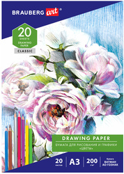 Содержит 20 листов плотностью 200 г/м2 формата А3 (297х420 мм). Листы из качественной бумаги устойчивы к истиранию. Обложка выполнена из импортного мелованного картона.