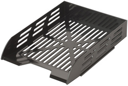 Изготовлен из прочного полистирола. Размер (ГхШхВ) – 330х245х65 мм. Обладает устойчивой конструкцией, благодаря которой удобен для хранения объемных документов и папок.