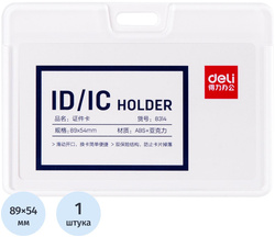 <p>Бейдж Deli для пропуска выполнен из прочного пластика АBS. Поставляется без держателя. Для горизонтальных форматов пропусков. Размер бейджа 69×98 мм.</p>