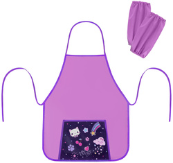 Фартук и нарукавники изготовлены из водоотталкивающего полиэстера. Стандартный размер фартука – 46x54 см, размер нарукавников – 25х12 см. Кроме того, фартук оснащен карманом для канцелярии и прочих принадлежностей, которые всегда должны быть под рукой во время уроков труда и занятий творчеством. Яркая печать коллекционного дизайна на кармане фартука. Нарукавники оснащены резинкой с обеих сторон. Фартук и нарукавники помогают защитить одежду ребенка от загрязнений во время занятий трудом и творчеством. Набор упакован в прозрачный пакет с европодвесом в сложенном виде. Заметная яркая этикетка с основной информацией о товаре выделяет его в магазине.