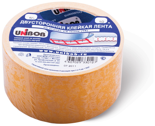 - Представляет собой ленту с нанесенным с двух сторон клеевым слоем на основе синтетического каучука