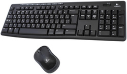 <p>Logitech Wireless Combo MK270 — комплект аксессуаров для ПК с беспроводным подключением. Соединение устанавливается с помощью общего приемника с разъемом USB, радиус действия которого составляет 10 метров. Клавиатура снабжена 8 функциональными кнопками для быстрого доступа к мультимедиа и управления проигрывателем. Оптическая мышь обладает разрешением в 1000 dpi, обеспечивающим точную навигацию. Мышь работает от батарейки типа АА, клавиатура — от двух батареек типа ААА.</p>