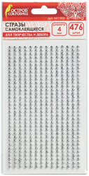 Качественный клеевой слой обеспечит надежную фиксацию на любых поверхностях. Изготовлены из пластика на основе акрила. Имеют круглую форму и выполнены в завораживающем под "серебро" цвете. Предназначены для детей от 3 лет. Поставляются в пакете с европодвесом. В упаковке - 476 страз размером 4 мм. Общий вес - 100 г.