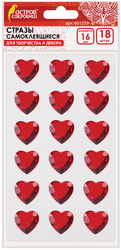 Качественный клеевой слой обеспечит надежную фиксацию на любых поверхностях. Легко отделяются от подложки. Изготовлены из пластика на основе акрила. Имеют форму сердец и выполнены в завораживающем красном цвете. Предназначены для детей от 3 лет. Поставляются в пакете с европодвесом. В упаковке - 18 страз размером 16 мм. Общий вес - 100 г.