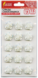 Качественный клеевой слой обеспечит надежную фиксацию на любых поверхностях. Легко отделяются от подложки. Изготовлены из пластика на основе акрила. Имеют форму роз и выполнены в завораживающем жемчужно-белом цвете. Предназначены для детей от 3 лет. Поставляются в пакете с европодвесом. В упаковке - 15 страз размером 18 мм. Общий вес - 100 г.